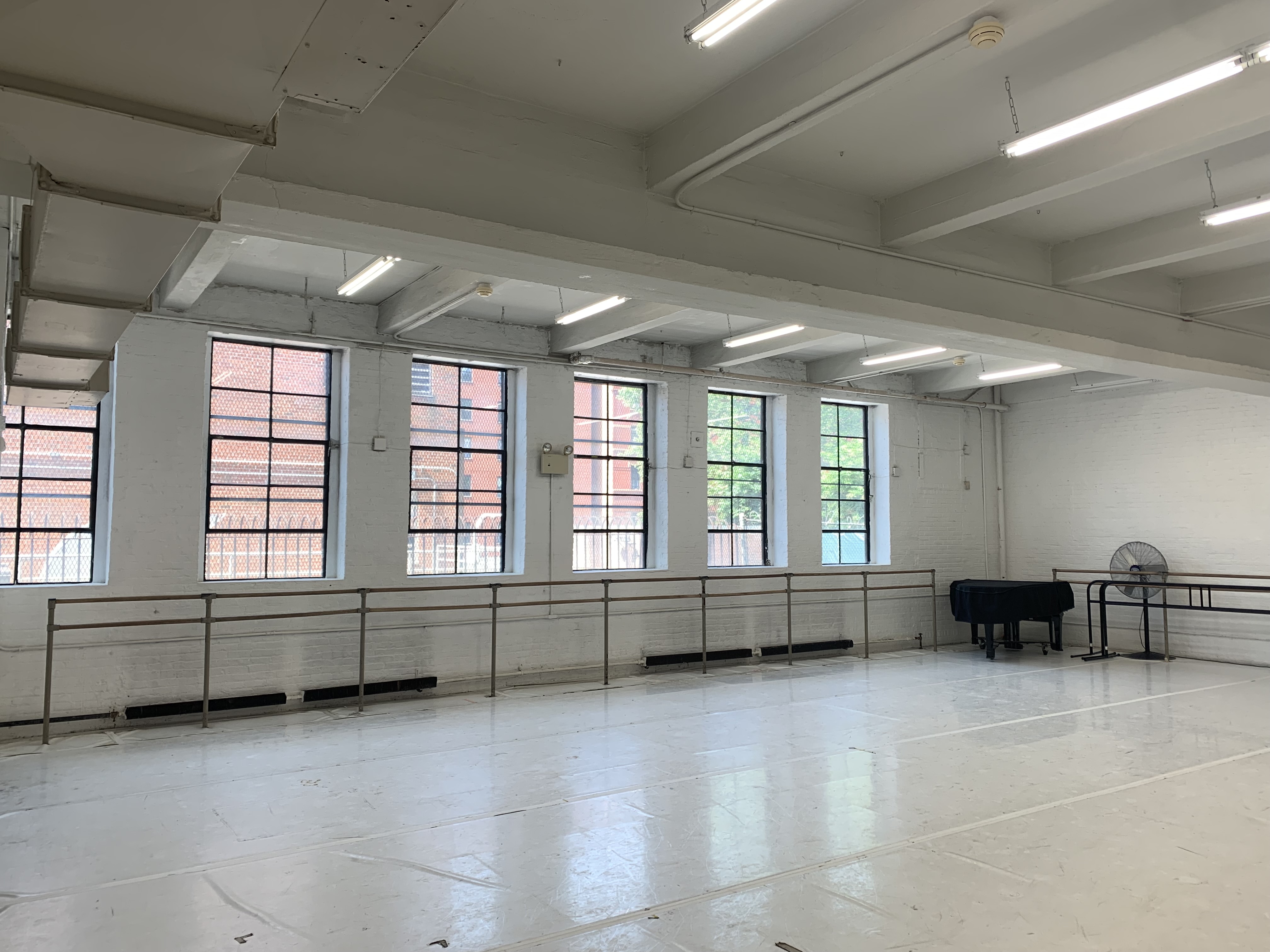 DTH has four studios, all of which are ADA-compliant and have Marley floors. Our facility has an elevator that serves all floors, and accessible restrooms are located on the basement level. DTH also offers a classroom and conference room for use by rental companies, as well as an outdoor terrace. Typical rental availability hours are Mon-Fri, 10am-4pm.